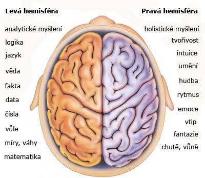 Určitě pro vás nebude nic nového, pokud zde napíši, že náš mozek se mimo jiné skládá ze dvou hlavních částí – z tzv. levé a pravé hemisféry (polokoule). Obě dvě tyto hemisféry vzájemně spolupracují, ale každá zodpovídá za jinou oblast činnosti.